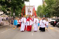 Po Mszy Świętej przeszła procesja z Najświętszym Sakramentem poprowadzona ulicami: al. Solidarności, Jagiellońską, bł. ks. Kłopotowskiego oraz Sierakowskiego. Ołtarze, przy których zatrzymała się procesja zostały umiejscowione przy: VIII LO im. Władysława IV, siedzibie Kurii u zbiegu ulic Floriańskiej, Jagiellońskiej i Kłopotowskiego, Domu Zakonnym Sióstr Loretanek oraz na placu przed Katedrą. Dekoracje ołtarzy zostały przygotowane przez: Zakon Rycerzy św. Jana Pawła II, strażaków, Siostry Loretanki oraz parafian z Katedry.