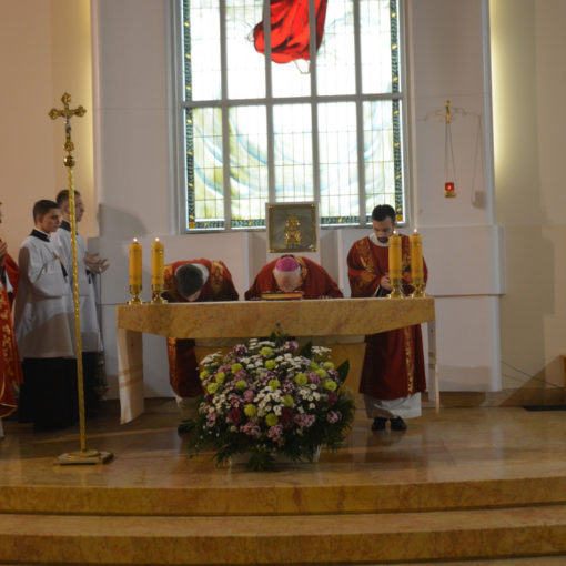 Uroczysta Msza Święta została poprzedzona aktem poświęcenia Rosji oraz Ukrainy Niepokalanemu Sercu Maryi Panny, którego dokonał biskup diecezjalny, Romuald Kamiński wraz z licznie zgromadzonymi wiernymi, klerykami seminarium oraz księżmi diecezjalnymi. O godzinie 17.00 cały Kościół powszechny w łączności z papieżem Franciszkiem powierzył Maryi losy Rosji i Ukrainy. To zawierzenie było odpowiedzią na prośbę Matki Bożej skierowaną 13 czerwca 1929 r. do s. Łucji.