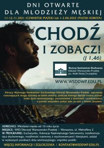 Klerycy Wyższego Seminarium Duchownego Diecezji Warszawsko-Praskiej na Tarchominie zapraszają rozeznających drogę życiową na dzień otwarty, podczas którego będzie można poznać realia życia seminaryjnego, porozmawiać z alumnami i przełożonymi, a przede wszystkim pobyć sam na sam z Panem Jezusem.