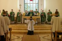 Dzisiaj 24 lutego została odprawiona Msza Św. dziękczynna za posługę dyrektora administracyjnego naszego seminarium ks. Wojciecha Stępnia. Po ponad pięcioletniej posłudze w  naszej wspólnocie został mianowany przez ks. Abp Henryka Hosera proboszczem parafii w Załubicach. Ks. Wojciech opiekował się budynkiem i ogrodem, dbał o płynność finansową, był odpowiedzialny za seminaryjną kuchnię oraz miał na swojej głowie dużo więcej obowiązków związanych z funkcjonowaniem seminarium. Dziękując z całego serca za tę posługę życzymy mu obfitego błogosławieństwa Bożego na dalszą posługę kapłańską jako proboszcza parafii.