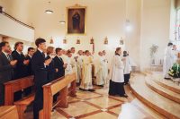 Początek uroczystych obchodów rozpoczęcia nowego roku akademickiego 2022/2023 miał miejsce w kaplicy seminaryjnej podczas Mszy Świętej sprawowanej przez biskupa naszej Diecezji ? biskupa Romualda Kamińskiego. Najświętszą Ofiarę koncelebrowali przełożeni seminarium oraz przybyli kapłani, którzy są m.in. wykładowcami seminaryjnymi oraz proboszczami parafii kleryków rozpoczynających pierwszy rok formacji.