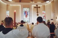 W auli głównej siedmiu kleryków pierwszego roku złożyło ślubowanie, po którym każdy otrzymał indeks uczelni wyższej ? Akademii Katolickiej w Warszawie, do którego afiliowane jest nasze Seminarium. Wykład inauguracyjny pt. Powołanie w zderzeniu ze współczesnością wygłosił ks. prof. dr hab. Marek Tatar. Zwrócił uwagę na rozwój dokumentów dotyczących formacji seminaryjnej i potrzebę większego oraz głębszego zanurzenia w formację seminaryjną, jako odpowiedź na zmiany zachodzące w otaczającym nas świecie.