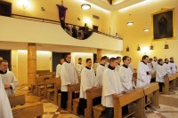W poniedziałek, 23 marca br., nasza wspólnota seminaryjna uczestniczyła we Mszy św. sprawowanej w rycie bizantyjskim. Mszy św. przewodniczył o. Piotr Kuszka, bazylianin, proboszcz warszawskiej parafii grekokatolickiej. Eucharystię koncelebrował ks. Rektor Krzysztof Warchałowski. W homilii o. Piotr nawiązał do odczytywanej tego dnia w Kościele Wschodnim Ewangelii o Marcie i Marii, które przyjmowały w swoim domu Jezusa. Zachęcał nas wszystkich, byśmy starali się łączyć w sobie obie postawy ewangelicznych niewiast. Liturgię ubogacił swoim śpiewem chór z parafii grekokatolickiej w Warszawie.