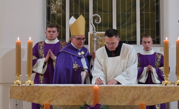 W poniedziałek 2 grudnia 2024 r. odbyły się w naszym seminarium uroczyste nieszpory połączone ze złożeniem wyznania wiary przez ks. biskupa nominata Tomasza Sztajerwalda. W nabożeństwie uczestniczył nuncjusz apostolski abp Antonio Guido Filipazzi oraz ks. bp Romuald Kamiński. Podczas Liturgii Godzin ks. rektor Tomasz Sztajerwald, złożył wyznanie wiary i podpisał stosowne przyrzeczenia związane z obejmowaniem przez siebie urzędu biskupa pomocniczego. Po zakończonej modlitwie wszyscy udali […]