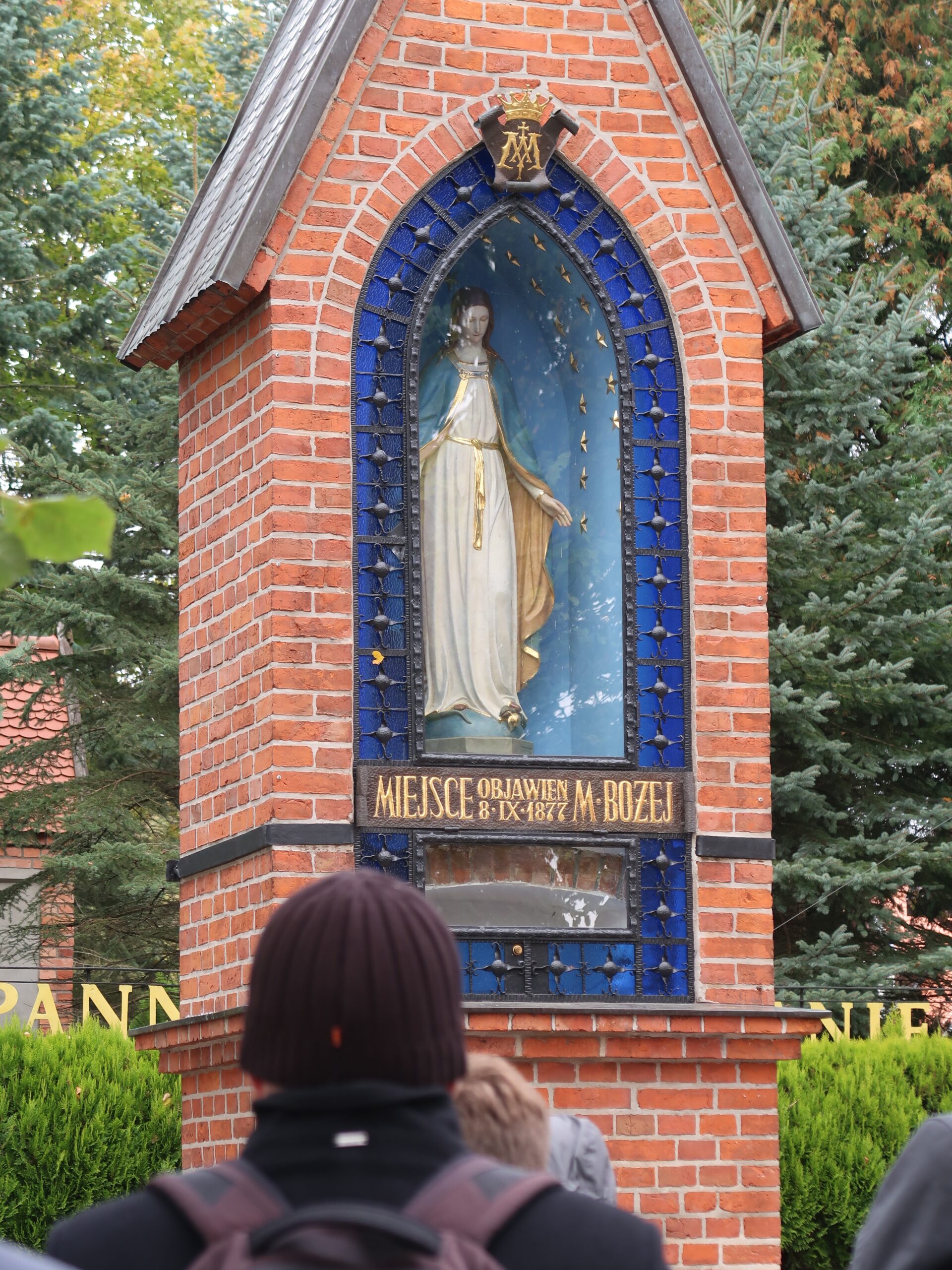 Tuż po przyjeździe wysłuchaliśmy historii związanej z tutejszymi objawieniami, które miały miejsce między czerwcem a wrześniem 1877 roku, kiedy to Matka Boża ukazała się dwóm dziewczynkom: Justynie Szafrańskiej i Barbarze Samulowskiej. W trakcie pobytu nawiedziliśmy cudowne źródełko, położone nieopodal sanktuarium, które 8 września 1877 roku Najświętsza Maryja Panna obiecywała pobłogosławić.