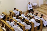 Dnia 18 maja w naszej kaplicy seminaryjnej odbyły się uroczyste Nieszpory, w trakcie których dziewięciu kleryków 5. roku, wyznało swoją wiarę i złożyli przyrzeczenia przed święceniami diakonatu. W krótkiej homilii ks. Rektor zachęcał przyszłych diakonów do brania przykładu ze św. Pawła, który żył według Ducha Bożego. Nieszpory zakończyła litania loretańska i nowenna do Ducha Świętego oraz krótka Adoracja Najświętszego Sakramentu.