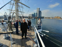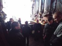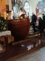 Kolejny dzień był deszczowy i jednocześnie bardzo intensywny. Na początku odwiedziliśmy Puck z kościołem gotyckim oraz portem, w którym gen. Haller dokonał zaślubin Polski z morzem. Mszę odprawiliśmy w Sanktuarium Matki Bożej Swarzewskiej, patronki ludzi morza, do której co roku już od wielu lat pielgrzymują rybacy, marynarze oraz okoliczna ludność. Ze Swarzewa pojechaliśmy na Hel, gdzie mieliśmy okazję zobaczyć umocnienia najdłużej broniącego się na Polskim wybrzeżu punktu oporu w Wojnie Obronnej 1939 r. Centralnym punktem tego dnia był rejs łodzią rybacką po zatoce Puckiej, który odbył się dzięki pomocy proboszcza parafii w Kuźnicy. Po powrocie na ląd i pożywieniu się pojechaliśmy na najbardziej wysunięty na północ punkt Polski – Przylądek Rozewie, gdzie zobaczyliśmy latarnię morską. Stamtąd przez Władysławowo i w nim nowoczesny kościół udaliśmy się do lasów Piaśnicy, w których od września 1939 r. Niemcy zamordowali ponad 12 tysięcy Polskich działaczy i patriotów mieszkających na pomorzu. Po tym miejscu kaźni oprowadził nas gospodarz miejsca ? proboszcz parafii Chrystusa Króla w Wejherowie, który wyłożył nam cały kontekst historyczny tamtych wydarzeń oraz starania o godne upamiętnienie ofiar, w których on sam bierze czynny udział. Zakończyliśmy kolacją na plebanii w Wejherowie, obejrzawszy uprzednio kościół, wspominający 106 błogosławionych męczenników II wojny światowej, w tym wuja ks. prof. Starowieyskiego.