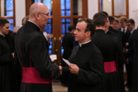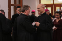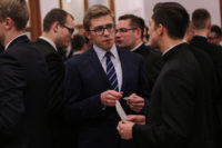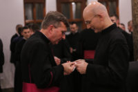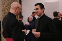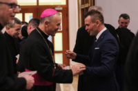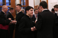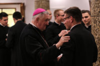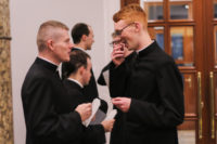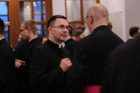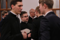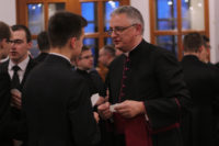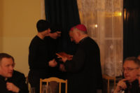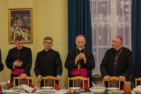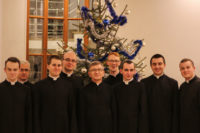 21 grudnia odbyło się spotkanie Wigilijne naszej wspólnoty seminaryjnej. Wśród zebranych byli ksiądz biskup Romuald Kamiński i ksiądz biskup Marek Solarczyk, przełożeni i profesorowie a także alumni roku pierwszego, którzy na co dzień przebywają w Seminarium roku propedeutycznego w Urlach. Spotkanie rozpoczęło się w holu głównym. Po odczytaniu ewangelii i krótkim komentarzu biskupa ordynariusza wszyscy zgromadzeni mieli okazję do złożenia życzeń i przełamania się opłatkiem. Uroczystość uświetniła schola seminaryjna, która wykonała przygotowane na tę okazję kolędy. Druga część spotkania odbyła się na refektarzu, przy wigilijnym stole. Kurs czwarty, zgodnie z tradycją, przygotował spersonalizowane prezenty dla profesorów i przełożonych, a wszystkich kleryków obdarował drobnymi upominkami. Po zakończonym posiłku nastąpił rozjazd do domów. Wszyscy alumni spotkają się znów 6 stycznia, aby z nową energią rozpocząć przygotowania do kolejnej sesji egzaminacyjnej.