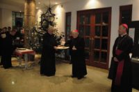DSC_055921 grudnia o godzinie 16.00 w holu głównym naszego budynku zgromadzili się klerycy naszego seminarium, księża przełożeni, wykładowcy, siostry pracujące w seminarium, a także pracownicy. Swoja obecnością zaszczycili nas dwaj biskupi naszej diecezji: Abp Henryk Hoser i bp Marek Solarczyk. Uroczystość rozpoczął śpiew scholi seminaryjnej, po czym miały miejsce życzenia złożone wszystkim zebranym przez abp. Henryka, ks. rektora Piotra Klimka, a także seniora alumnów kl. Dawida Jastrzębskiego. Zanim zasiedliśmy wraz z przybyłymi gośćmi do wigilijnej wieczerzy, złożyliśmy sobie wspólnie życzenia.