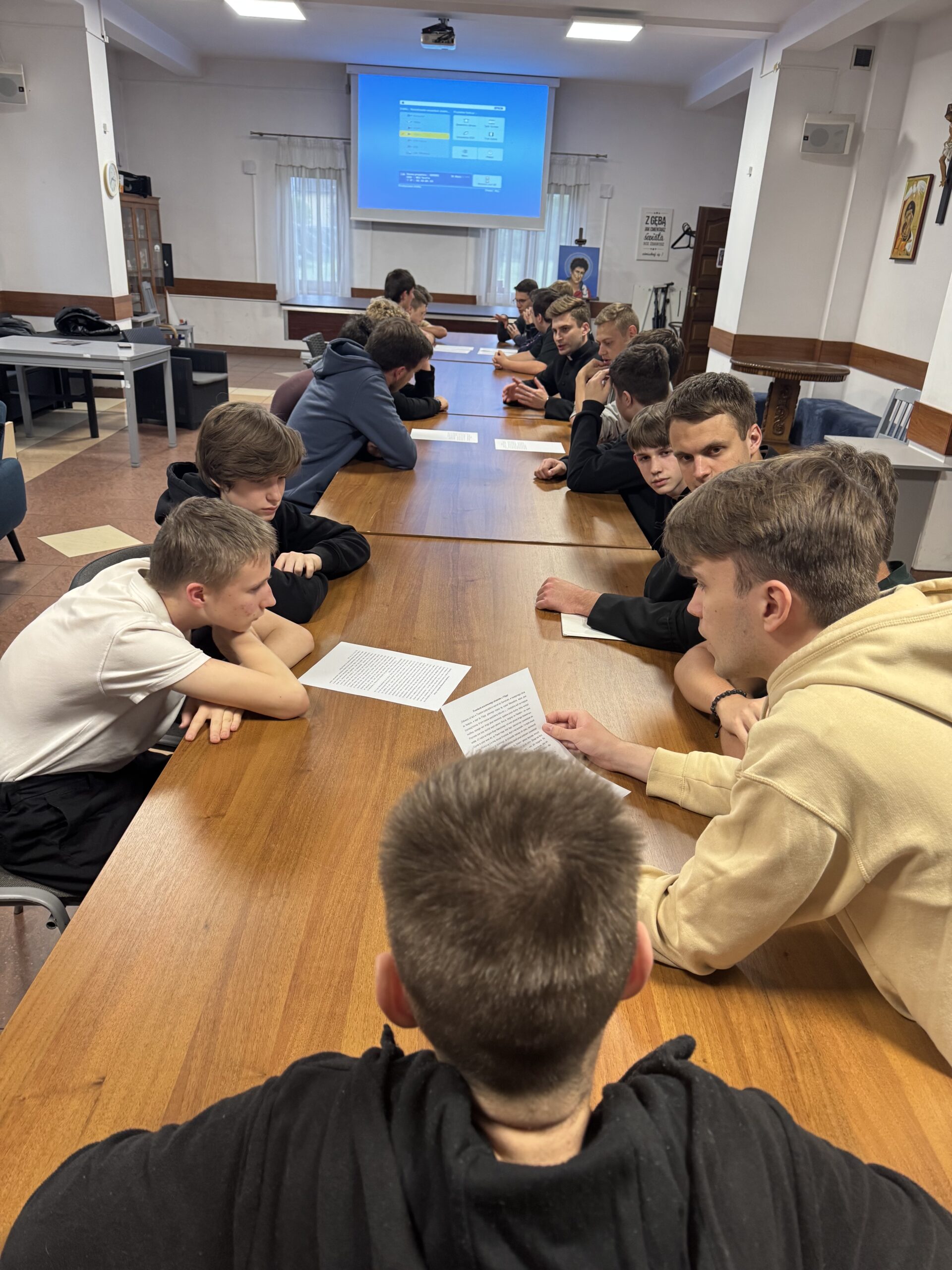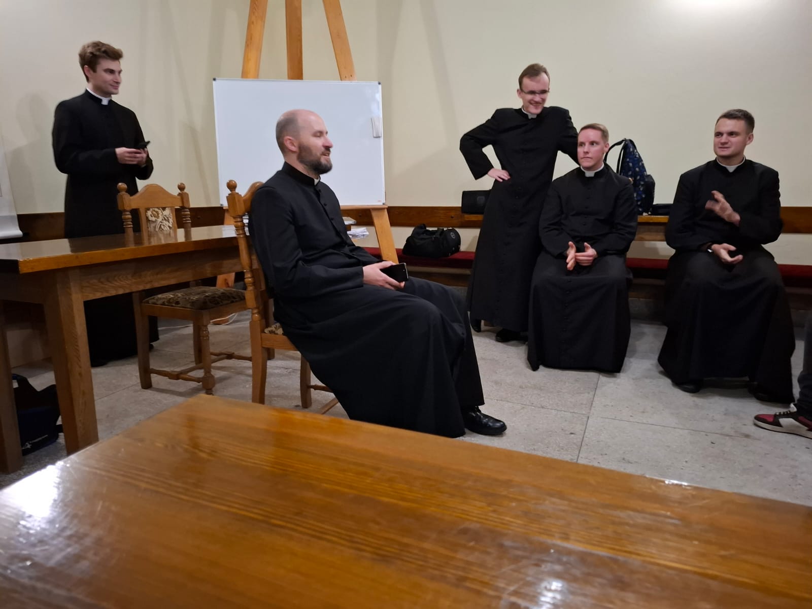 Ministranci z ogromnym zaangażowaniem uczestniczyli w rozmowach, dzielili się swoimi przemyśleniami i pytaniami. W dalszej części spotkania opowiadaliśmy o naszym seminarium: jak wygląda formacja, jak spędzamy dzień, co nas inspiruje i z jakimi wyzwaniami się mierzymy. Nie zabrakło też modlitwy, wspólnie zjedzonej pizzy, czy gry w piłkę nożną. Każdy z nas miał również okazję podzielić się osobistym świadectwem drogi powołania.